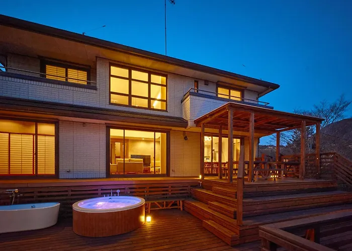 Located only 0.9 km from the Kuzuryu Shrine, Villa Noel Hakone Skylight Sauna & Open Air Bath offers a terrace with views of the lake. Featuring mountain views, this Hakone villa invites guests to visit the Lake Ashi, located merely 14 minutes' walk away.